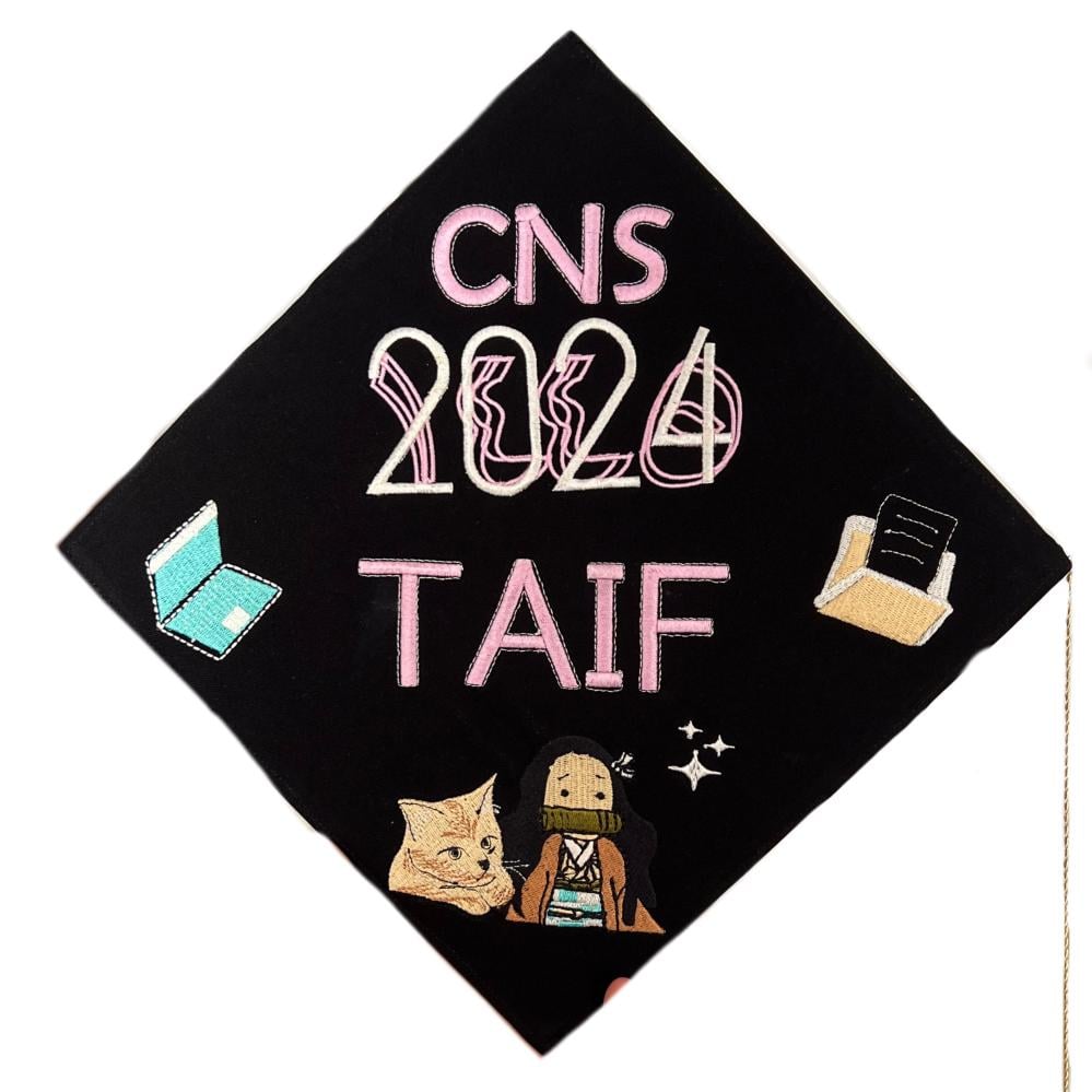 ألف مبروك يا خريج🎓تطريز على قبعة تخرج بتصميم مخصص من العميل، تقدر ترفق صورة التصميم تحت.تسعدني خدمتكم💕